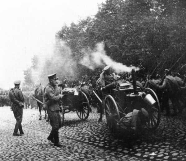Russian troops in Helsinki 1914. (Photo: Ivan Timirjasev, Helsinki City Museum)Germans had landed on Estonia coast in October 1917. The sea and land fortress of Tallinn surrendered 27.2.1918. Russia made the separate peace with the Central powers 3.3.1918. German troops landed at Hanko in April 1918 and made a contract with Russian forces which still were in Finland. Russians promised to be neutral and leave the country as soon as possible. Despite of that some Russian solders took part in civil war with Red Guard. Russians promised also make all guns unusable and leave all forts undamaged to Germans.